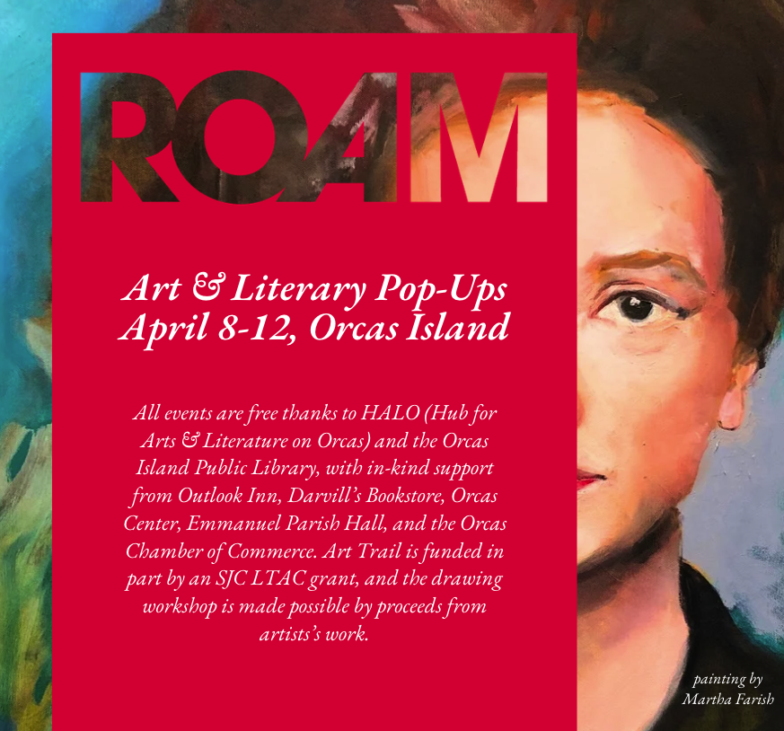 ROAM literary pop-ups made possible by Orcas Island Public Library and HALO. Art Trail Pop-Ups made possible by HALO and a grant from SJC LTAC.
